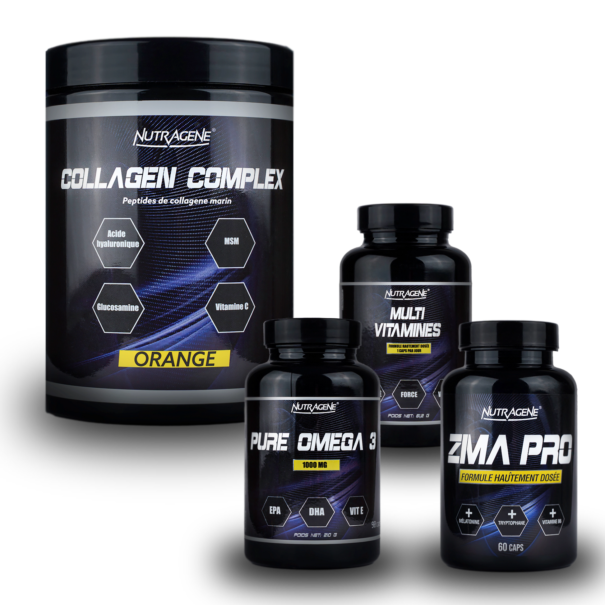 Le Pack SANTÉ & RÉCUPÉRATION Nutragene® a été formulé pour soutenir ton organisme au quotidien, renforcer ton système immunitaire et optimiser ta récupération musculaire. Idéal pour les sportifs, mais aussi pour toute personne cherchant à améliorer son bien-être général, il réunit quatre compléments essentiels pour une santé optimale :
